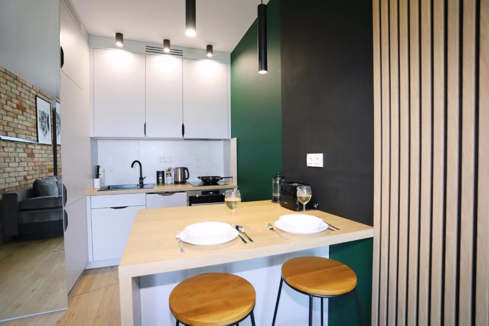 W sercu Wałbrzycha, między Ratuszem a Rynkiem, przy ulicy Sienkiewicza, znajduje się apartament na drugim piętrze zabytkowej kamienicy. Łączy on historyczny klimat z nowoczesnym komfortem. Składa się z kuchni, salonu i sypialni.