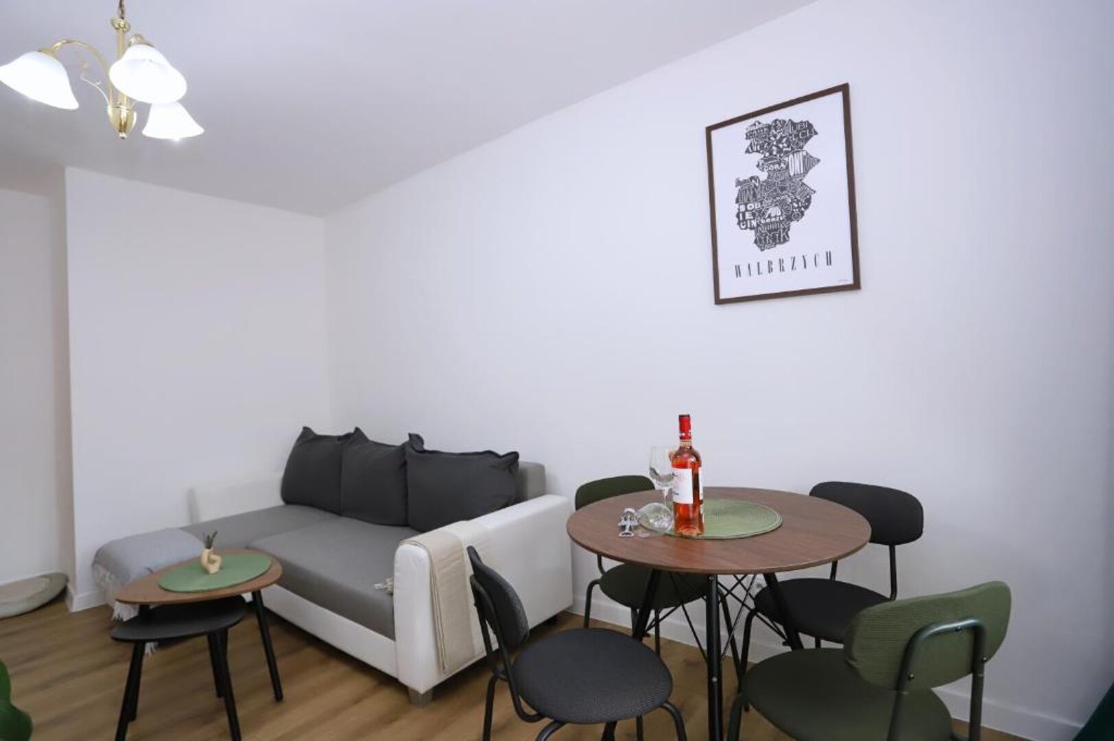 W sercu Wałbrzycha, między Ratuszem a Rynkiem, przy ulicy Sienkiewicza, znajduje się apartament na drugim piętrze zabytkowej kamienicy. Łączy on historyczny klimat z nowoczesnym komfortem. Składa się z kuchni, salonu i sypialni.