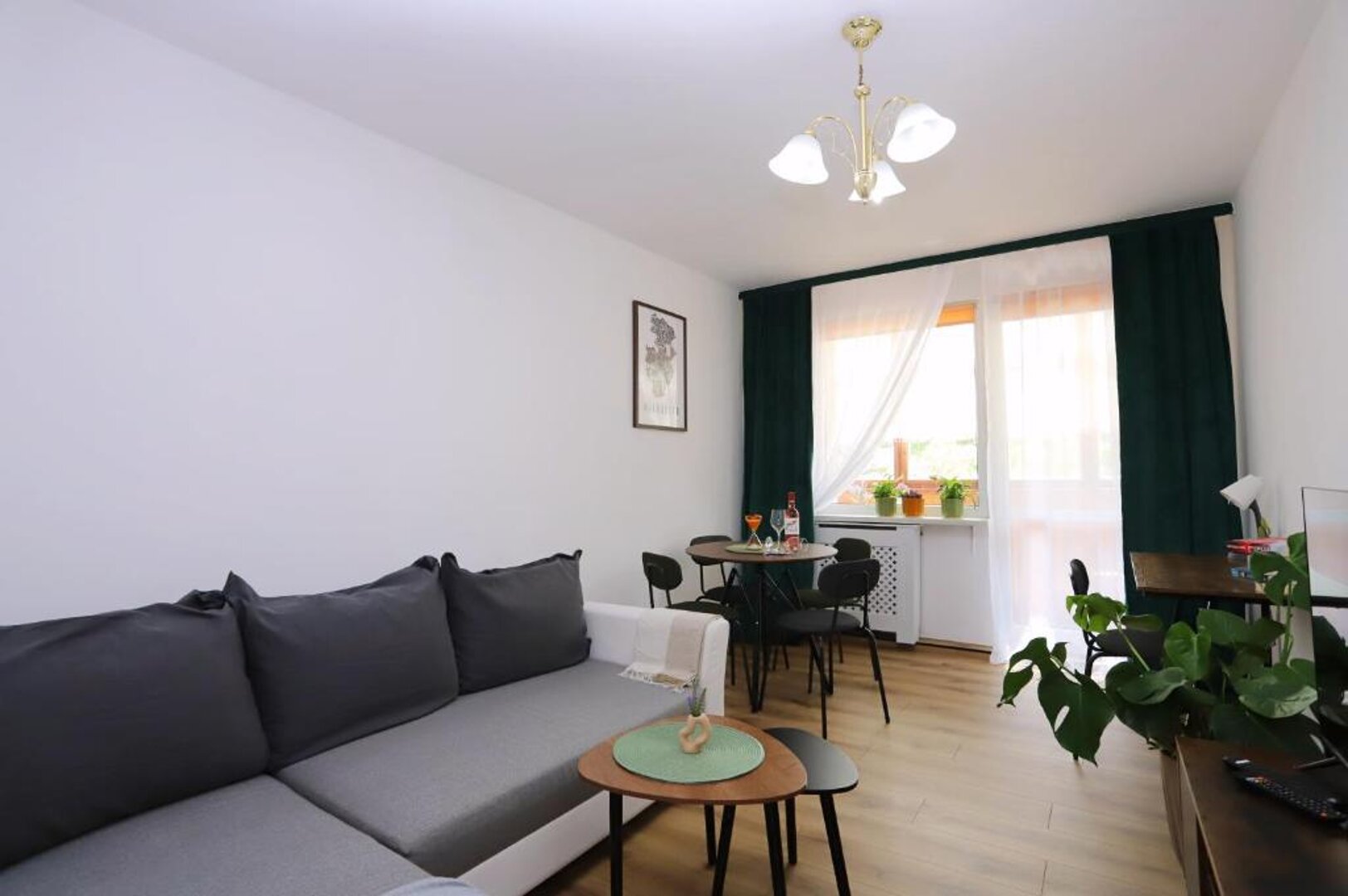 Oferujemy Państwu komfortowy apartament zlokalizowany w malowniczej dzielnicy Podzamcze w Wałbrzychu, idealny na wypoczynek dla 4 osób. Apartament wyróżnia się nowoczesnym wystrojem, który łączy wygodę z przytulną atmosferą. W skład apartamentu wchodzi przestronna sypialnia z wygodnym podwójnym łóżkiem oraz salon z rozkładaną sofą, co zapewnia komfortowy sen dla wszystkich gości. Duże okna wpuszczają mnóstwo naturalnego światła, a z salonu można wyjść na balkon, gdzie można cieszyć się poranną kawą lub wieczornym relaksem z pięknym widokiem na okolicę. Kuchnia jest w pełni wyposażona w niezbędne sprzęty, takie jak lodówka, kuchenka, mikrofalówka oraz naczynia, co umożliwia samodzielne przygotowywanie posiłków. Przytulna jadalnia stanowi idealne miejsce na wspólne biesiadowanie. Apartament dysponuje również nowoczesną łazienką z prysznicem, co zapewnia wygodę i komfort podczas pobytu. Całość jest utrzymana w jasnych kolorach, co sprawia, że przestrzeń jest jeszcze bardziej przyjemna. Dzięki dogodnej lokalizacji, goście mogą łatwo odkrywać atrakcje Wałbrzycha, a także korzystać z uroków natury w pobliskich Sudetach. To idealne miejsce na wypoczynek w gronie przyjaciół lub rodziny.